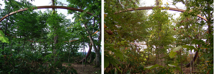 → In Winter season, Most of the leaves will fall down on the ground. The ring will show us its entire form clearer than ever. The ring will show its primary form between the branches with shadows. It will let us consider a wide difference and distance from the forest and man once more. Of course, nobody can see what is on the upper part of the ring, much less touch it. I hope that the ring will be covered with a lot of ivy and branches, and it will assimilate into the green of the trees. These things show us that the ring belongs to nature. Someday after a long, long time, the ring will disappear entirely into the forest. It is an essential fate for everything. We will not be able to see the transformed ring in the future. It will be looked at by our posterity.